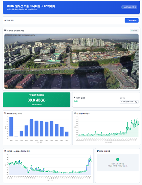 RION과 같은 정밀 측정 장비를 활용하여 현장에 설치된 시스템이 24시간 내내 자동으로 환경 소음을 측정하고 데이터를 서버로 전송합니다.